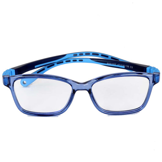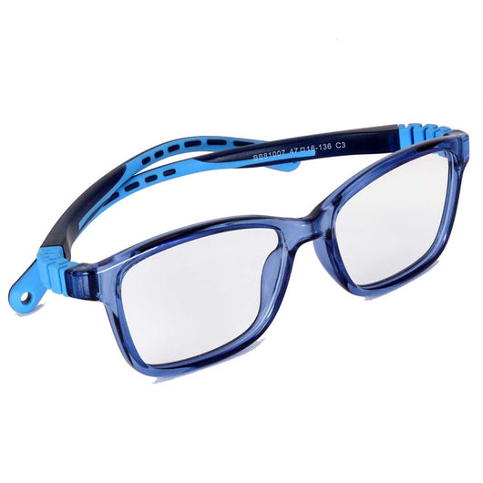 Produzido em acetato azul de alto brilho, resistente e sofisticado, capaz de acomodar qualquer tipo de lente. As hastes em Miraflex® oferecem flexibilidade e durabilidade, garantindo uso prolongado mesmo no dia a dia agitado das crianças.