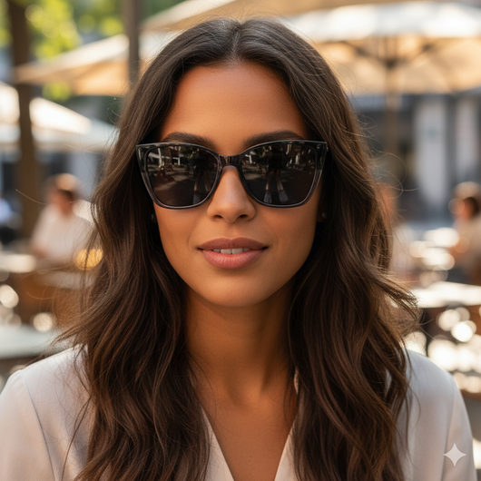 Os óculos de sol Armanelli com lentes com proteção UV400 evitam que a exposição prolongada à luz UV causem problemas como catarata, degeneração macular e queimaduras solares nos olhos.