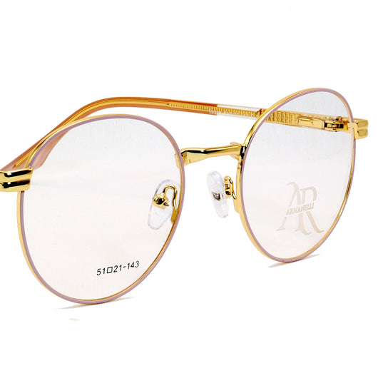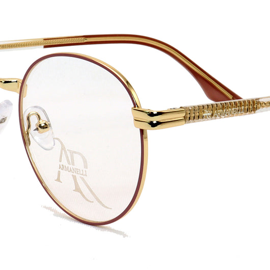 Nosso lindo modelo em armação em metal dourado Armanelli Circle possui aro total, com finas bordas, plaquetas reguláveis e substituíveis ao longo do uso, discreto e leve, para pessoas exigentes.
